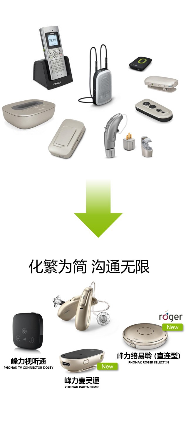 • 助听器可以帮助听损人士解决近距离的聆听 ,而无线附件可以帮助提升中远距离以及嘈杂环境下的聆听体验