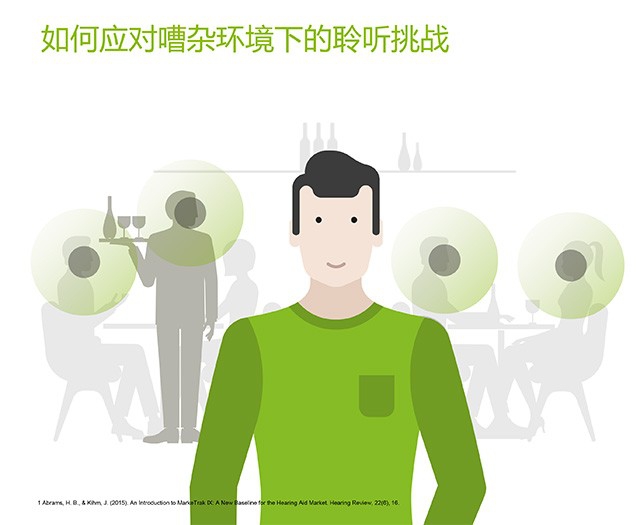 • 通过使用无线附件,助听器的功能得以扩展。在上课、会议、远距离聆听、餐厅多人交流等场景中,言语识别率可以大幅度提高。