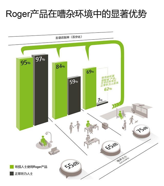 配合Roger产品的使用,助听器用户在嘈